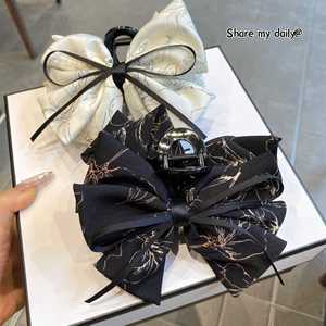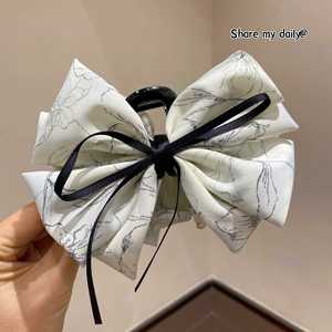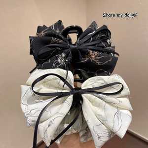 新中式水墨抓夹女高级感蝴蝶结大号发量多鲨鱼夹发卡子国风头饰