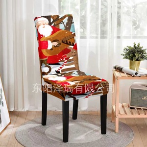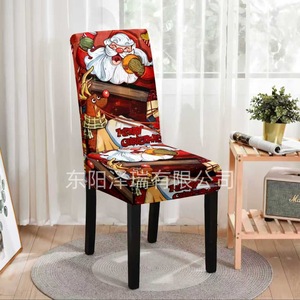 亚马逊卡通圣诞椅套节日氛围客厅装饰餐椅套弹力防尘印花椅子套罩