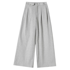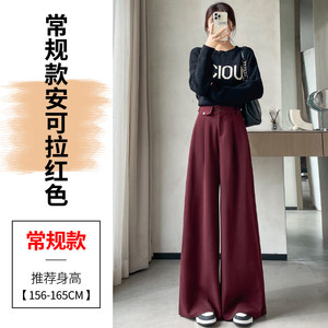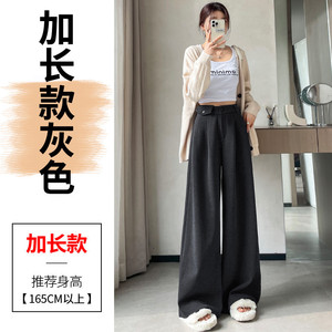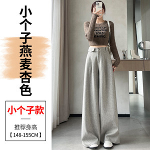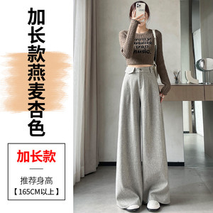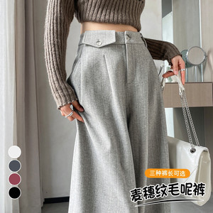 现货现货2025春秋新款麦穗纹毛呢裤直筒阔腿裤高腰拖地休闲裤女