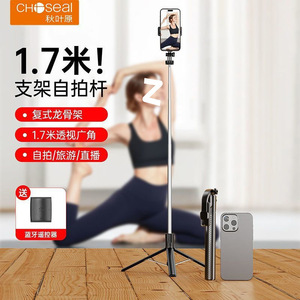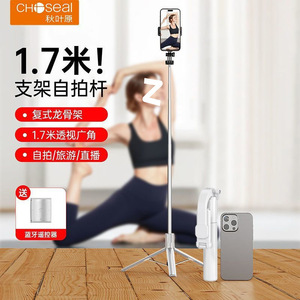 秋叶原新款自拍杆旅游便携手机自拍遥控拍照神器迷你360旋转落地