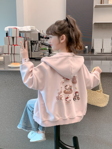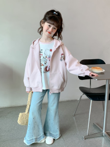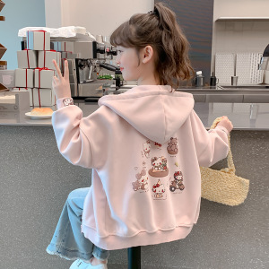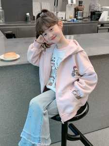 女童秋装连帽卡通卫衣开衫2025新款中大童韩版洋气上衣拉链外套潮