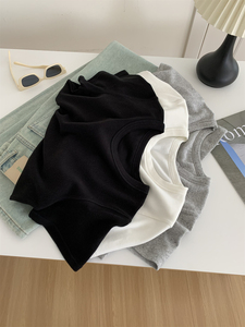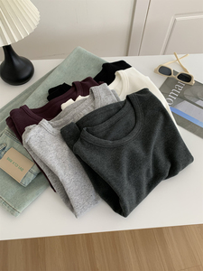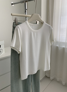 秋季加厚260克重慕斯绒圆领正肩T恤女垂感软糯显瘦百搭短袖打底衫