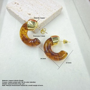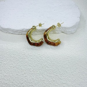 欧美复古甜酷风几何铜&塑料组合C字形耳环不规则美拉德风水滴耳钉