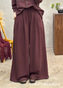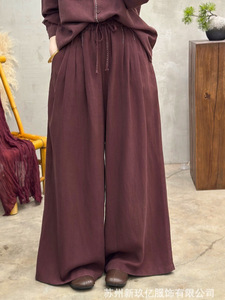 亚麻阔腿裤女2025秋季款文艺纯色个性拖地长裤气质纯色高腰休闲裤