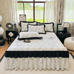 法式赫本风荷叶花边水洗棉床裙三件套夹棉加厚床垫保护套单件床裙