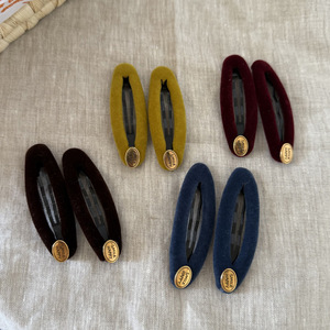 复古金标丝绒彩色椭圆BB夹高级感气质百搭刘海侧边夹碎发夹头饰发
