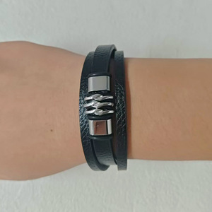 新款时尚简约跨境皮革男士手链手环饰品配饰高级感小众手镯爆款男