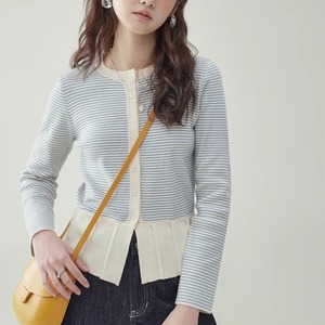 拼色条纹百褶下摆针织衫女早春新款小众长袖上衣