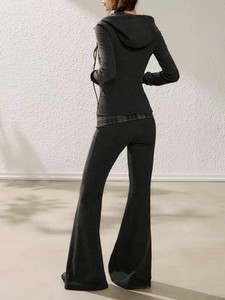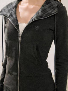 美式格纹连帽开衫卫衣拼接高腰宽松百搭卫裤阔腿裤