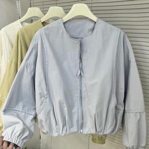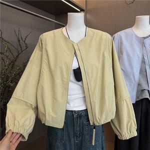 韩版极简纯色小个子百搭上衣2025秋季新款圆领薄款棒球服休闲外套
