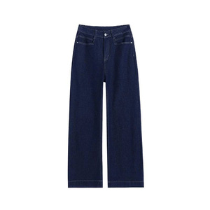 丹宁蓝牛仔直筒裤女年春夏新款长裤高腰弹力垂感阔腿拖
