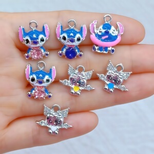 卡通迷你史迪仔DIY滴油饰品配件合金吊坠 钥匙扣耳环项链手链挂件
