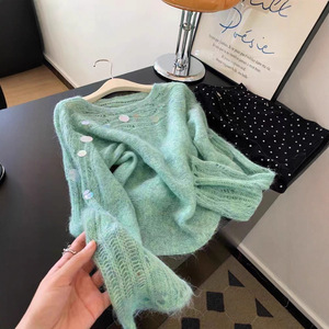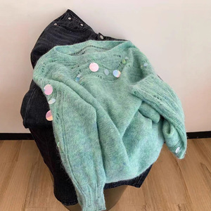 自留款推荐~多巴胺绿色亮片拼接针织衫女秋冬新款氛围感穿搭上衣