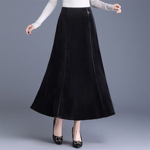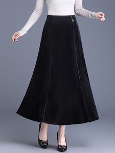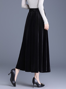 金丝绒a字半身裙女春秋中长高腰显瘦大摆伞裙黑色高级感气质长裙