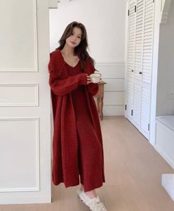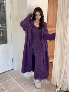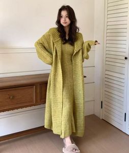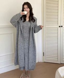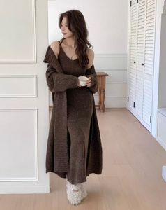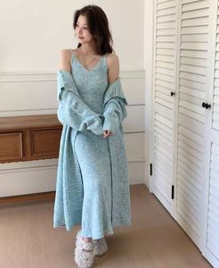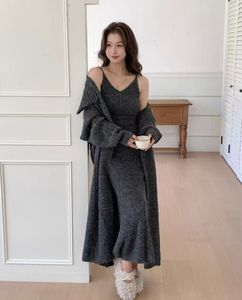 法式复古V领针织吊带套装新款气质名媛风连衣裙慵懒大开衫两件套