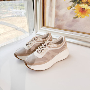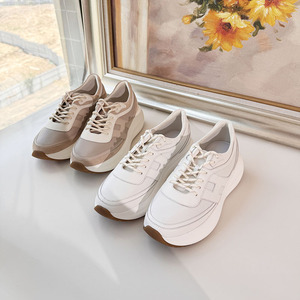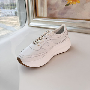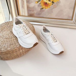 无标 头层牛皮~早秋新品H家厚底老爹鞋696增高德训休闲鞋小白鞋女