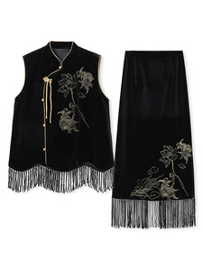 秋季新款国风新中式高端重工刺绣轻奢流苏设计马甲半裙套装 N8068