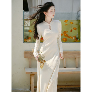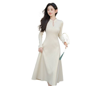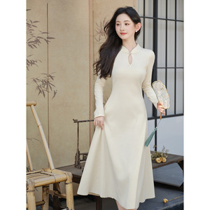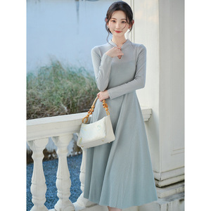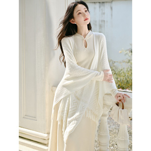 新中式复古改良旗袍秋冬打底针织鱼尾裙连衣裙秋冬配国风披肩套装