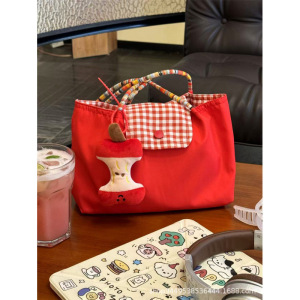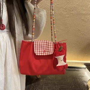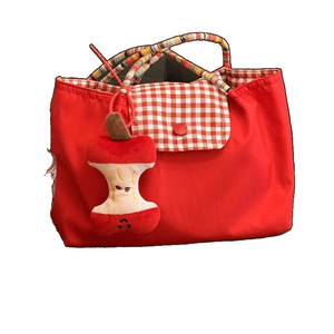 红格子小单肩加苹果挂件