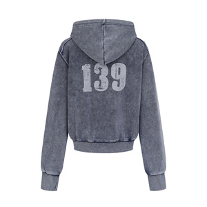 美式复古水洗设计字母印花拉链连帽卫衣女秋新款宽松休闲百搭上衣
