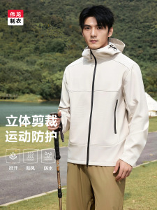 防风连帽夹克男易打理防雨冲锋上衣秋季新款运动休闲抗磨抗皱外套