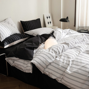 香龄|A类100支全棉长绒棉数码印花四件套轻奢高级感纯棉简约条纹