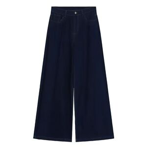 秋季美式深蓝牛仔裤女2025新款高腰显瘦直筒宽松常规款阔腿裤代发