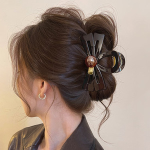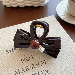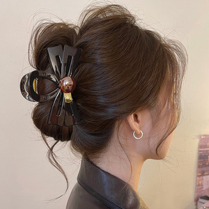 轻奢金标圆珠蝴蝶结鲨鱼夹发量多后脑勺头发抓夹女2025新款高级感