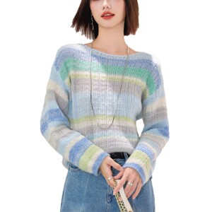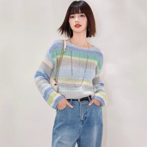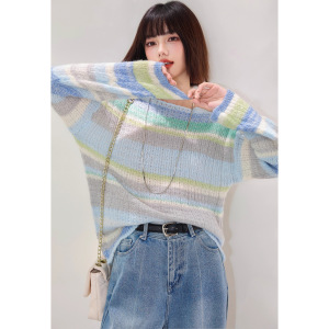 铭海 高级感混色针织衫2025年秋季甜美圆领毛衣女宽松慵懒风外套