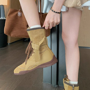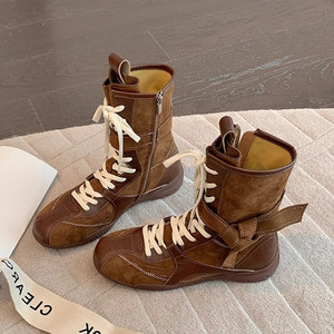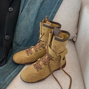 复古真皮拳击靴女2025年秋季新款英伦风马丁靴美拉德厚底中筒短靴