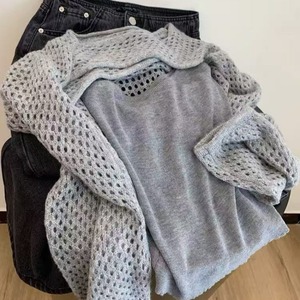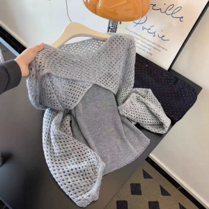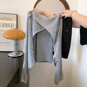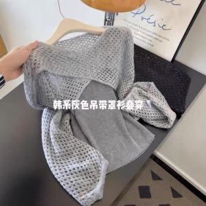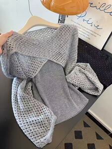 配披肩灰色叠穿两件套长袖针织衫女士新款上衣高级感秋季穿搭ins