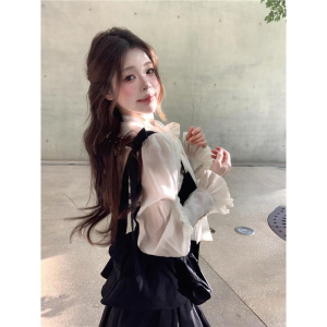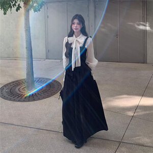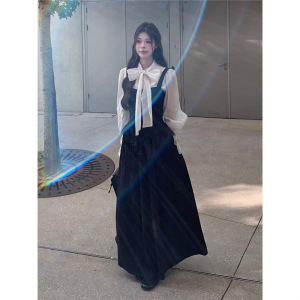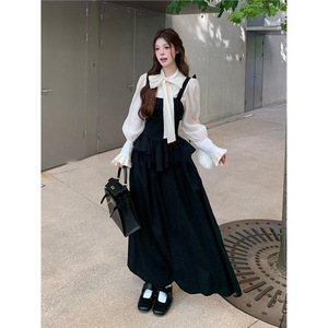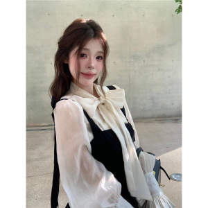 【黑巧日记】早秋千金风蝴蝶结衬衫纯色收腰连衣裙学院风减龄套装