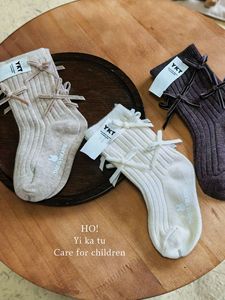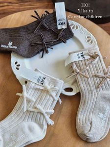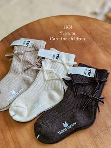 Yikatu伊卡兔儿童袜子批发2025秋款新款咖色多蝴蝶结童袜