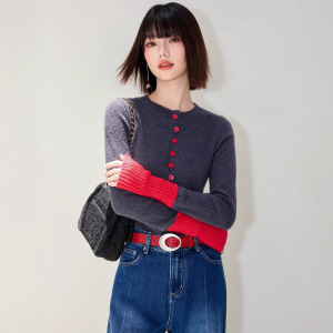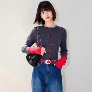 高级感超好看撞色针织开衫外套女秋冬季内搭上衣软糯独特灰色毛衣
