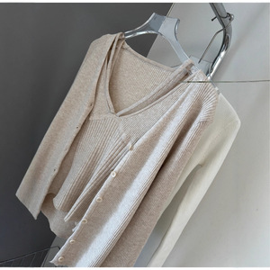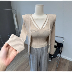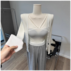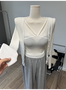 现货 东大门 吊带背心单排扣长袖针织衫开衫毛衣两件套时尚套装