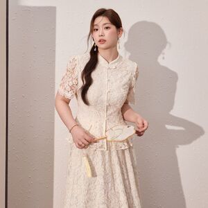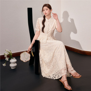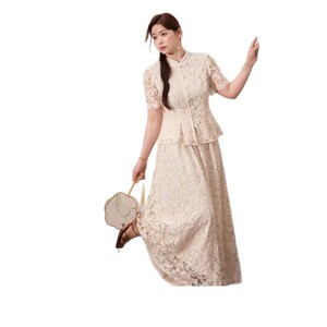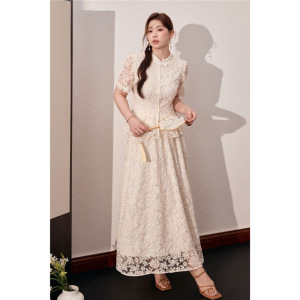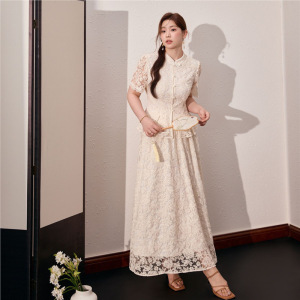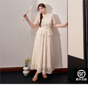 蓝语大码女装新中式重工刺绣短袖上衣显瘦a字半身裙夏季漂亮套装