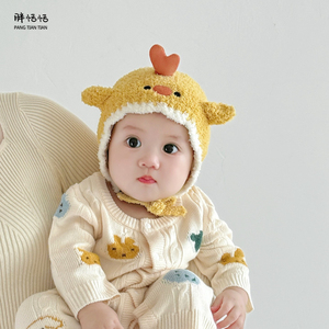 婴儿帽子秋冬超萌新生宝宝通毛线帽冬天男女小月龄保暖护耳帽