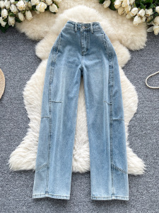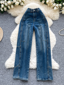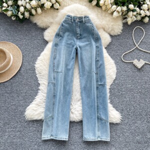欧美风复古牛仔裤女夏季新款高腰显瘦直筒炸街设计辣妹拖地长裤潮