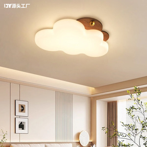 中古风云朵卧室灯吸顶灯奶油风儿童房灯侘寂风胡桃木色主卧书房灯
