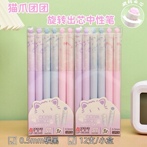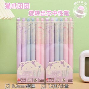 奥德美猫爪团团旋转出芯中性笔学生用可爱猫爪黑色水笔ST头书写笔