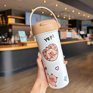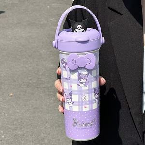 库洛米保温杯女高颜值316不锈钢学生吸管水杯大容量儿童双饮杯子