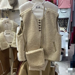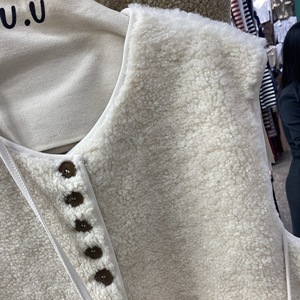 白色叠穿仿羊羔毛马甲外套女2025秋冬新款韩系设计感马甲背心上衣