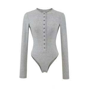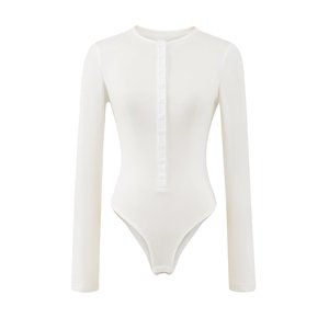 美式亨利领白色修身长袖T恤女秋季新款卡戴珊紧身连体上衣打底衫