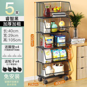 厨房菜篮子置物架家用移动落地式多层果蔬收纳筐多功能微波炉架子
