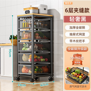 黑色【全钢木板大台面抽拉柜】6层33*42*95(五篮一板)♜