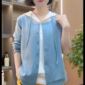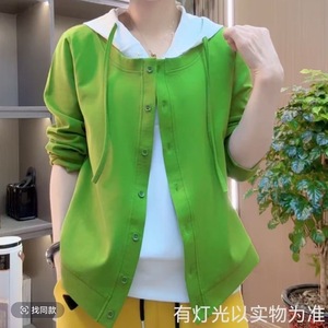 一件代发抖音爆款春秋休闲百搭显瘦连帽卫衣女时尚撞色假两件上衣