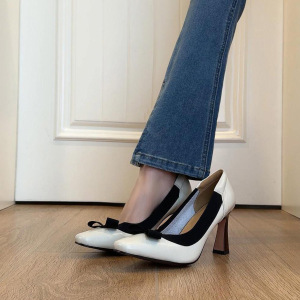 羊皮版~复古文艺风气质通勤百搭粗跟高跟鞋女时尚优雅蝴蝶结单鞋