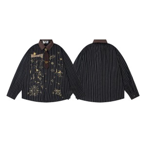 Broken Mirror 25秋季New美式复古个性图案条纹宽松长袖衬衫