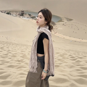 沙漠旅游薄款文艺棉麻围巾女大西北废土风褶皱丝巾氛围感纱巾披肩