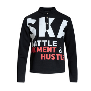 2025年街头小众字母印花立领长袖T恤男女款ins潮牌潮休闲百搭上衣